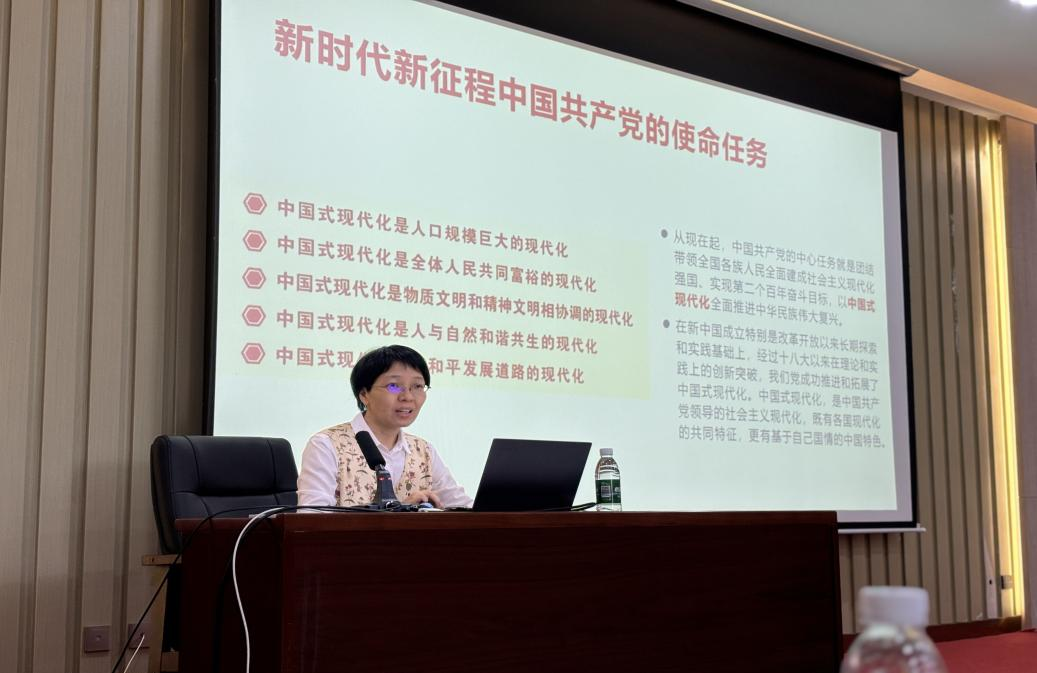 魏茹冰老师以《新革命、新征程——中国式现代化视野下的百年党史》为题,通过生动的讲解和丰富的党史内容,讲解了近代中国共产党成立的必然性、突破性、先进性。贯彻习近平总书记的重要讲话内容,深刻领会党的二十大精神,号召新时代青年人应为做好符合新时代中国特色社会主义的优秀青年党员而不断奋斗。